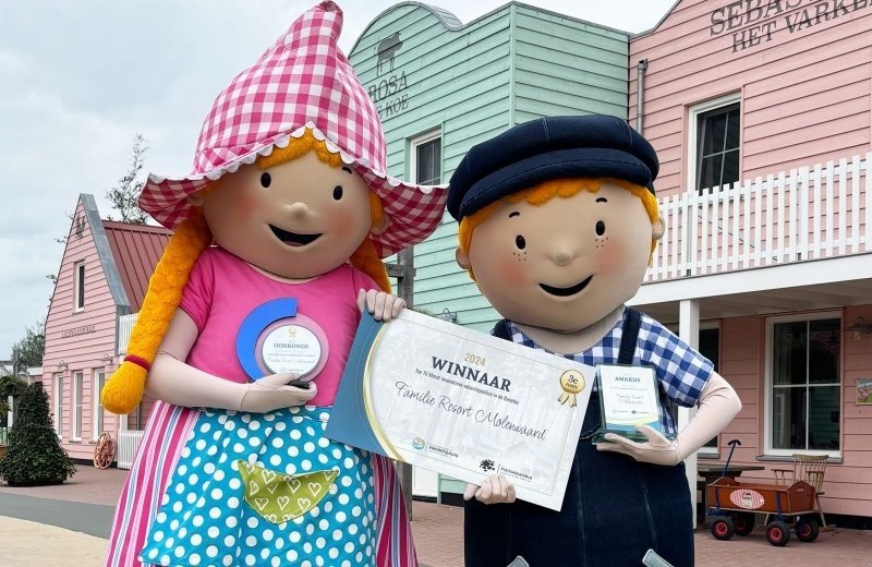 Wat een ontzettende eer om deze prachtige prijs voor de tweede keer in ontvangst te mogen nemen! Familie Resort Molenwaard is in januari 2026 verkozen tot het Meest kindvriendelijke vakantiepark door de Parkvakantie Awards. Dit is allemaal dankzij jullie stemmen!