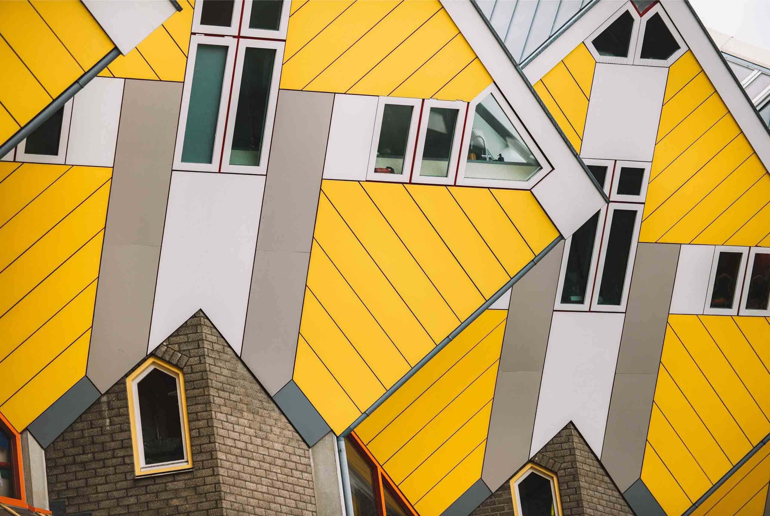 Mit dem Fahrrad, zu Fuß oder mit öffentlichen Verkehrsmitteln…in Rotterdam stolpern Sie vom einen zum anderen architektonischen Highlight. Denken Sie an einen leckeren Zwischenstopp in der Markthal mit etwa 100 frischen Units, 15 Foodshops und diversen Restaurants. Stöbern Sie zwischen den Ständen nach leckerem Essen, aber sehen Sie sich auch das Kunstwerk 'Hoorn of Plenty' an. Die niederländische Version der Sixtinischen Kapelle. Mit gestilltem Appetit befinden Sie sich im Nu vor den weltberühmten Kubushäusern. Schauen Sie sich den Kijk-Kubus im Blaakse Bos an und entdecken Sie diesen besonderen Entwurf des Architekten Piet Blom.