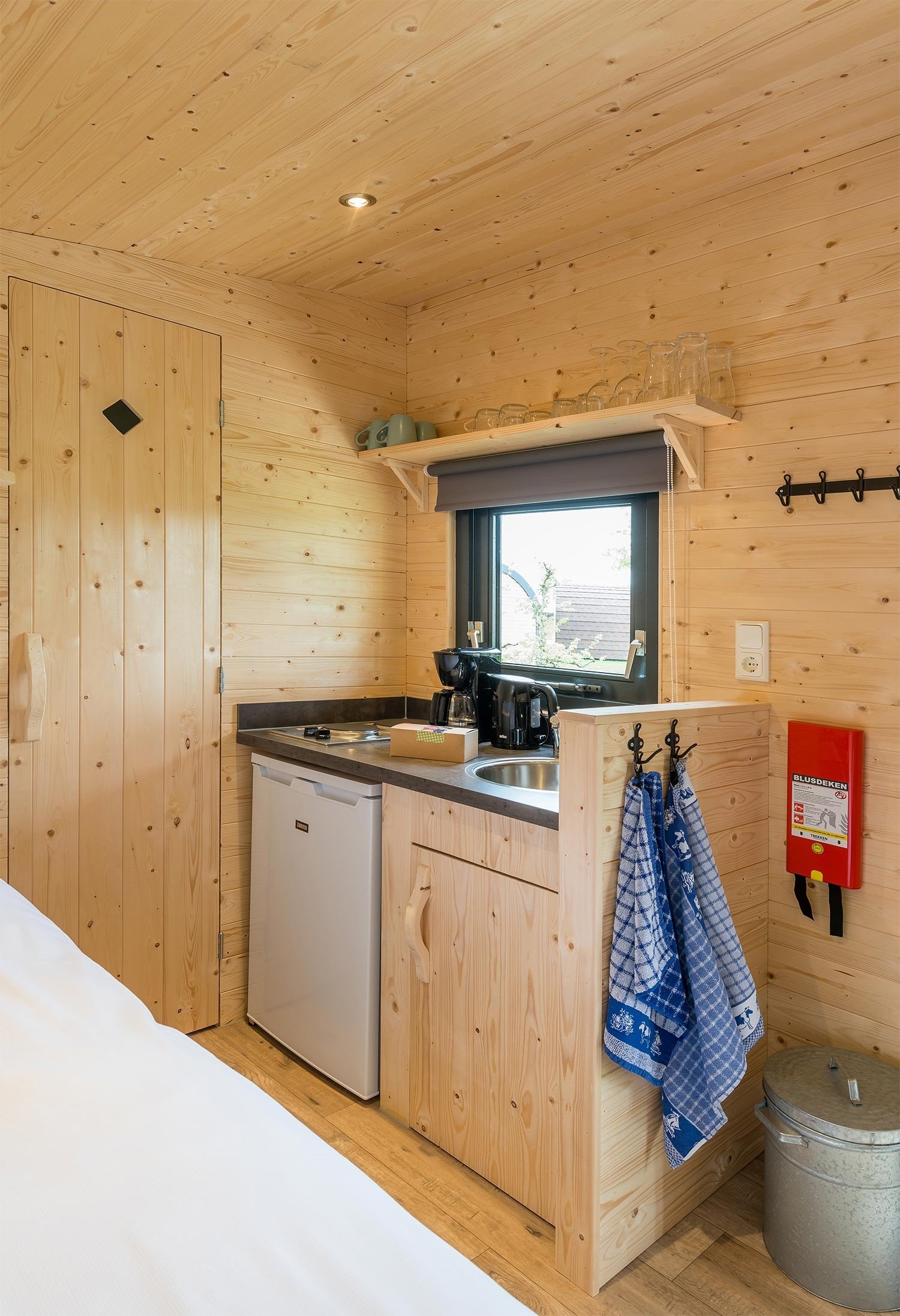 Alle Polderlodges sind vollständig elektrisch. Das Wasser wird in allen Lodges über einen Boiler erhitzt.
