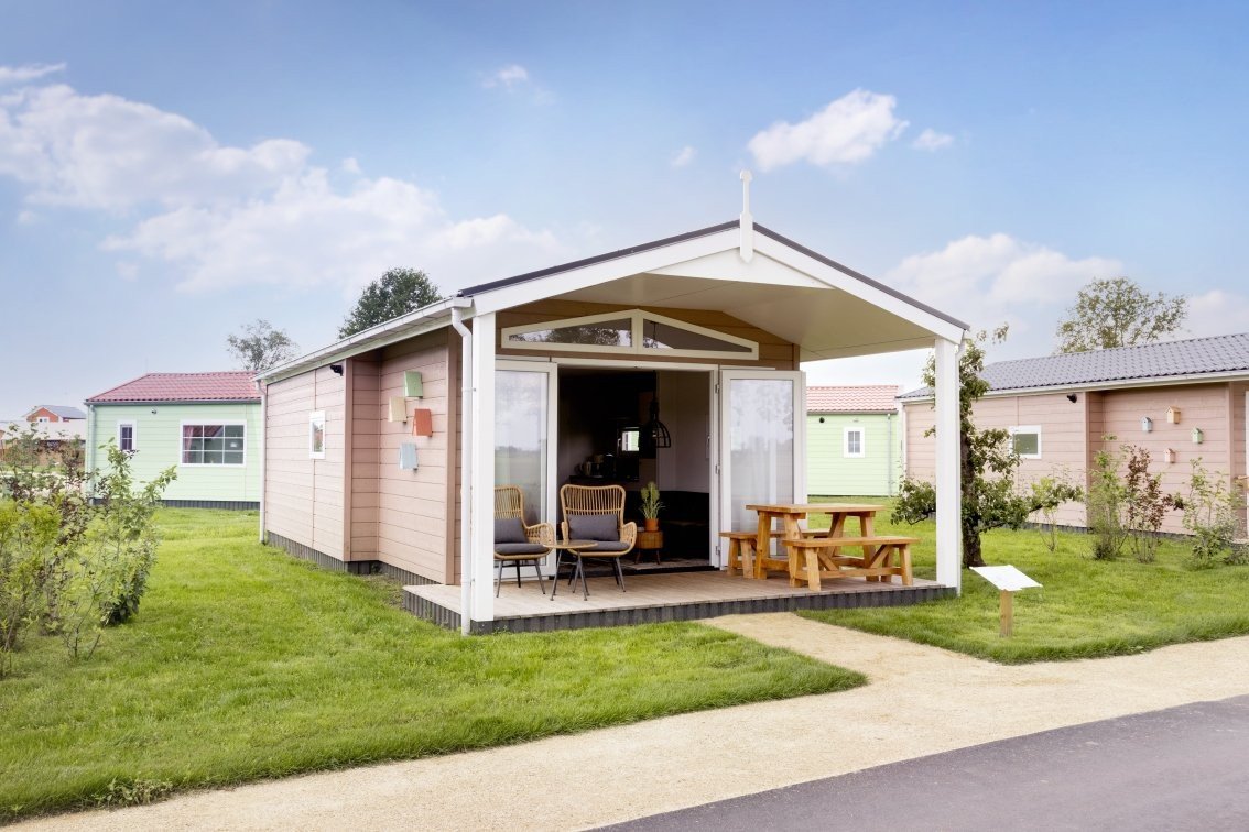 Genießen Sie die ländliche Ruhe im häuslichen Biesboschchalet. Machen Sie es sich auf den Stühlen auf der überdachten Veranda bequem und genießen Sie die prächtige Aussicht über den Park und Polder.