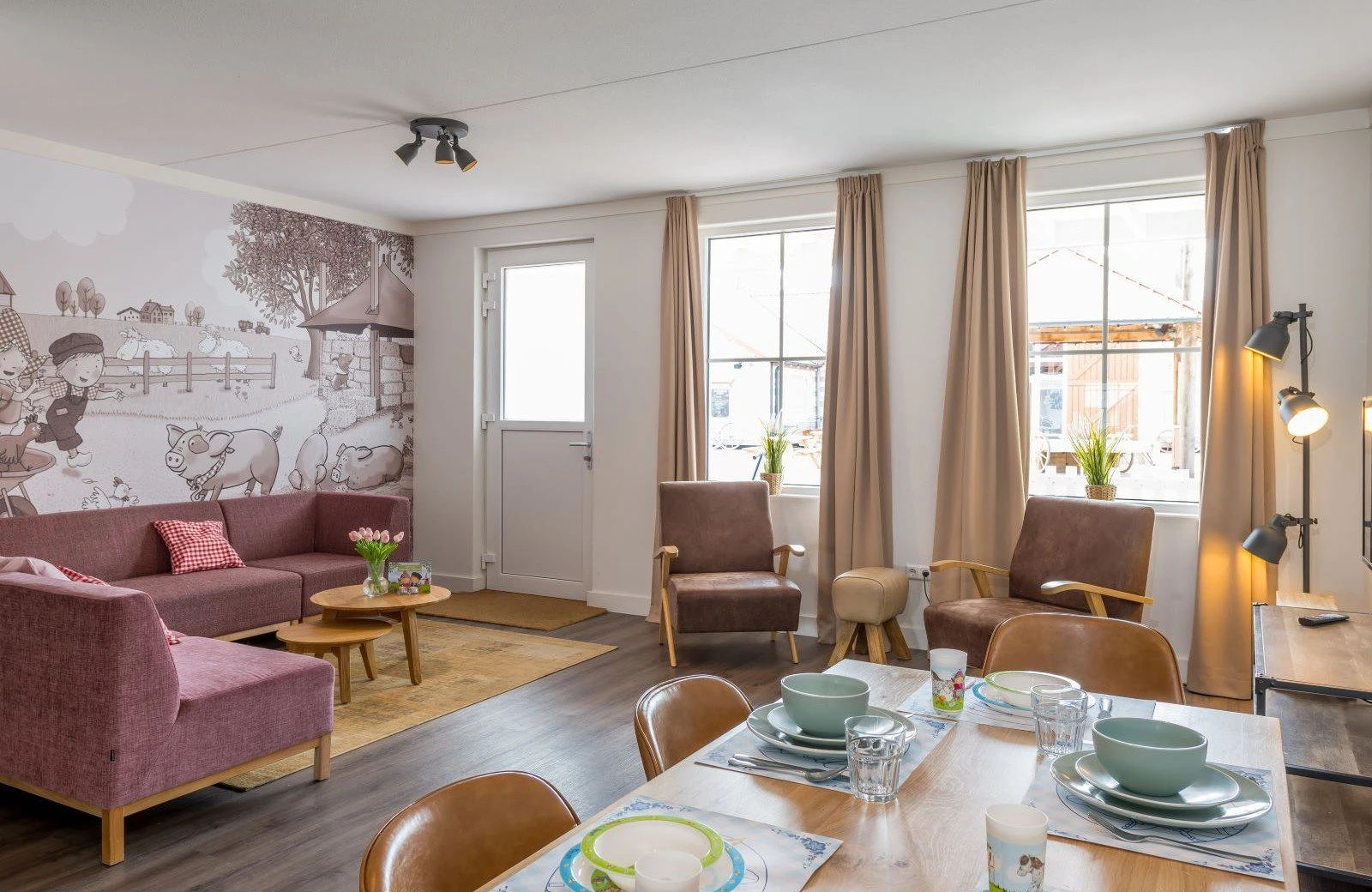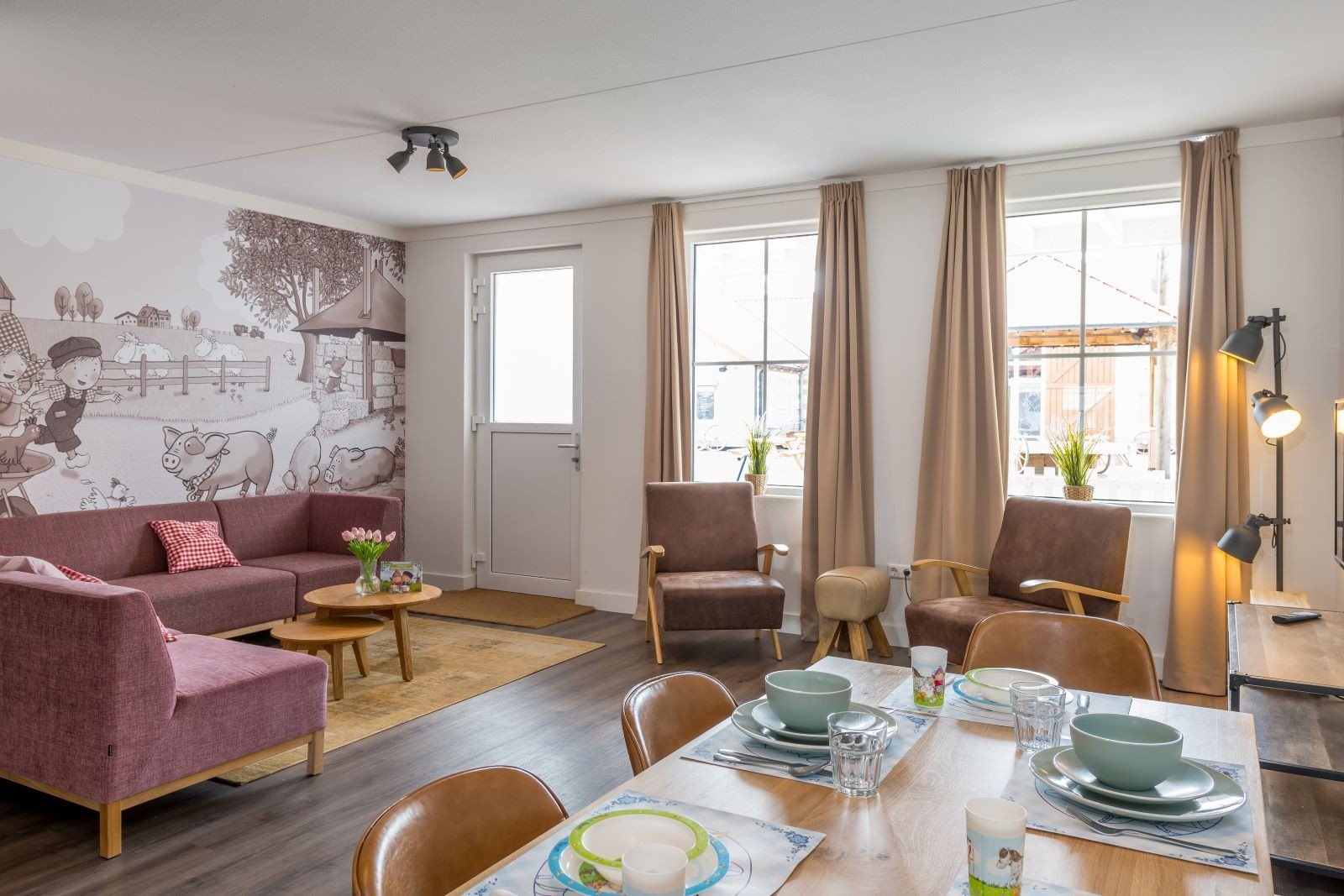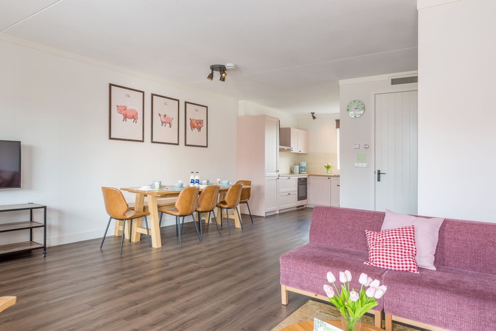 Diese Unterkunft ist Teil einer Reihe von angebauten Häusern. Die 8-Personen-Dorpsstraat besteht aus zwei Etagen und ist komplett ausgestattet. Das Haus ist komplett im Stil von Sebastiaan, dem Schwein, eingerichtet und verfügt über ein gemütliches Wohnzimmer mit Sitz- und Essecke. Da Sebastiaan, das Schwein, für seinen fröhlichen Charakter bekannt ist, können Sie sich auf einen glücklichen rosa Aufenthalt freuen.