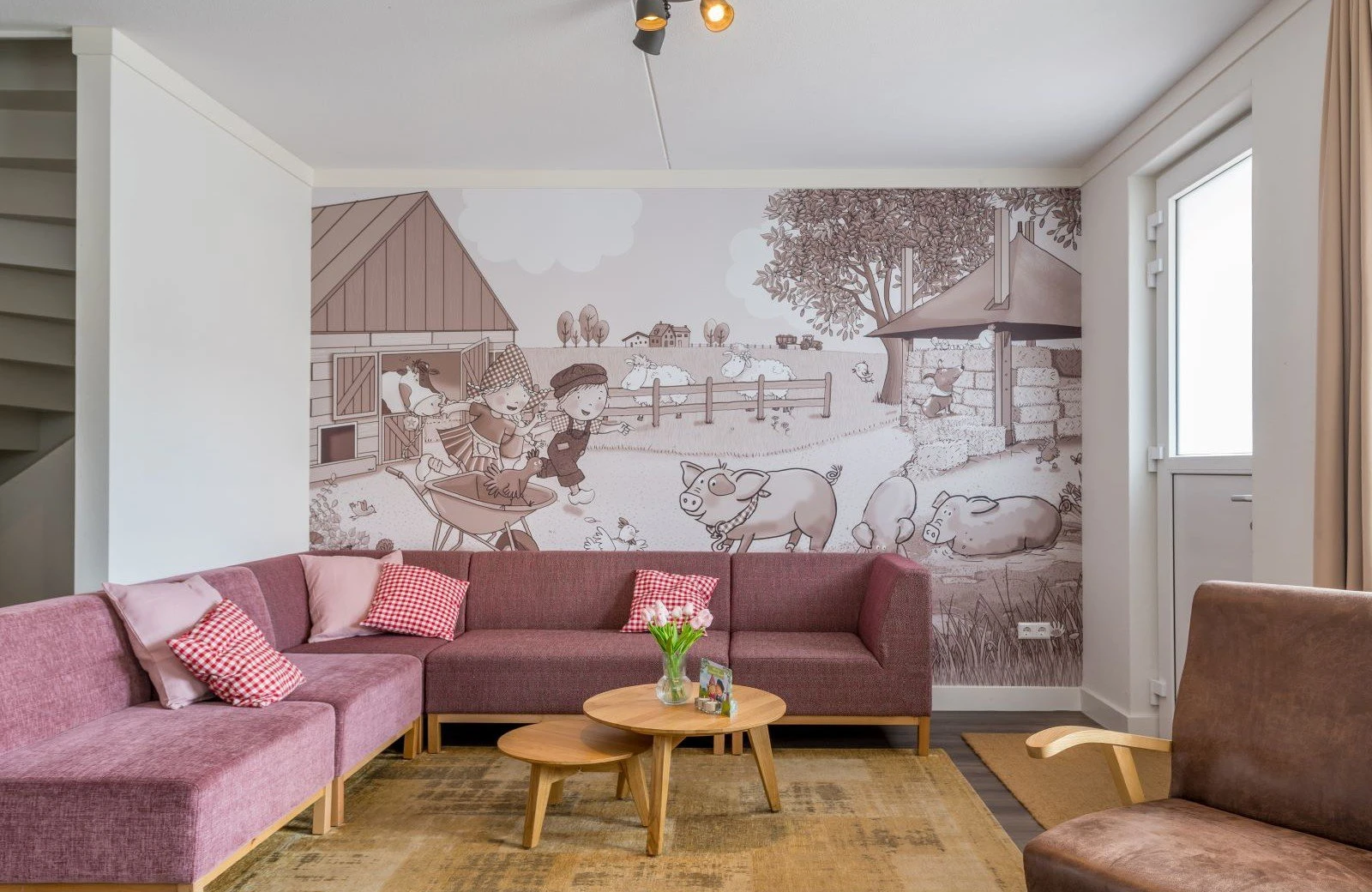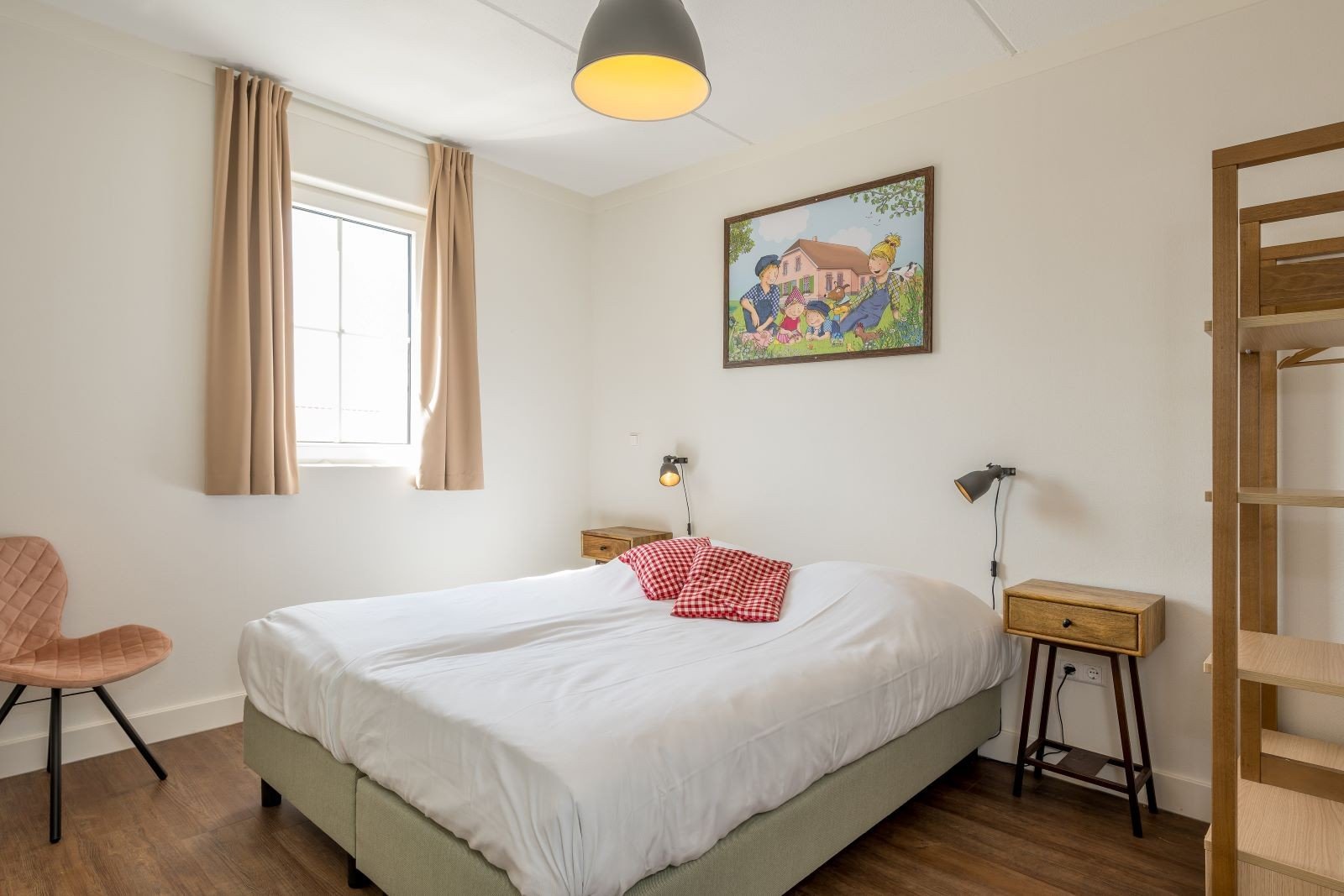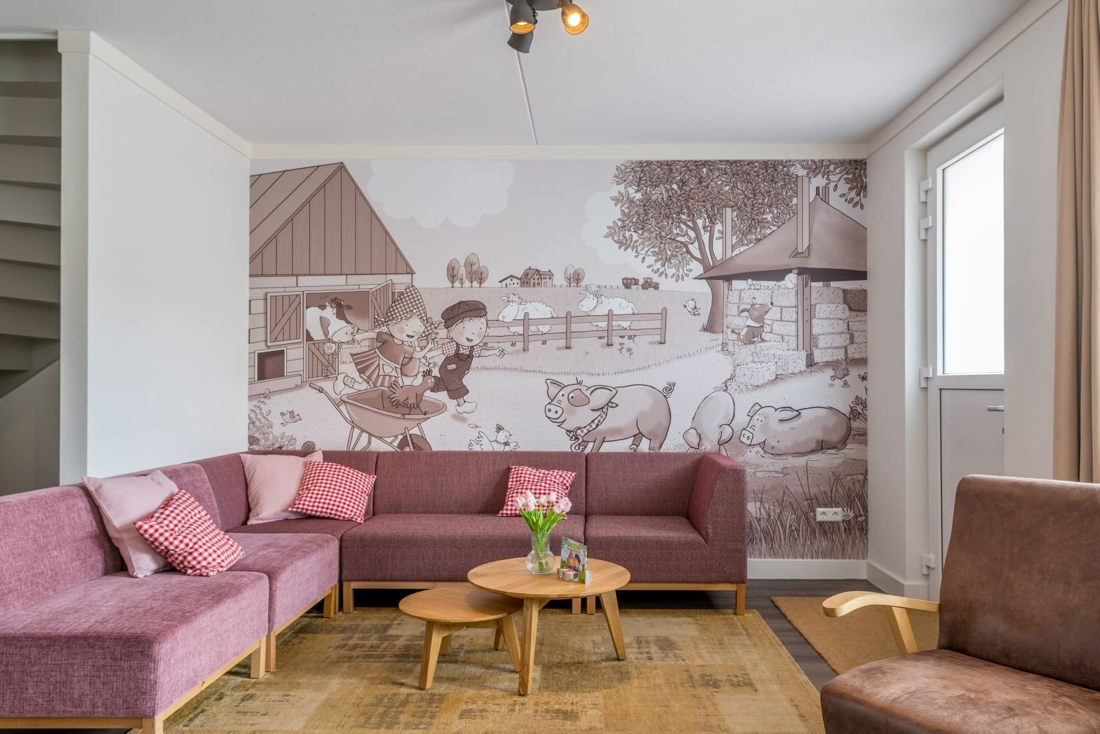 Diese Unterkunft ist Teil einer Reihe von angebauten Häusern. Die 8-Personen-Dorpsstraat besteht aus zwei Etagen und ist komplett ausgestattet. Das Haus ist komplett im Stil von Sebastiaan, dem Schwein, eingerichtet und verfügt über ein gemütliches Wohnzimmer mit Sitz- und Essecke. Da Sebastiaan, das Schwein, für seinen fröhlichen Charakter bekannt ist, können Sie sich auf einen glücklichen rosa Aufenthalt freuen.