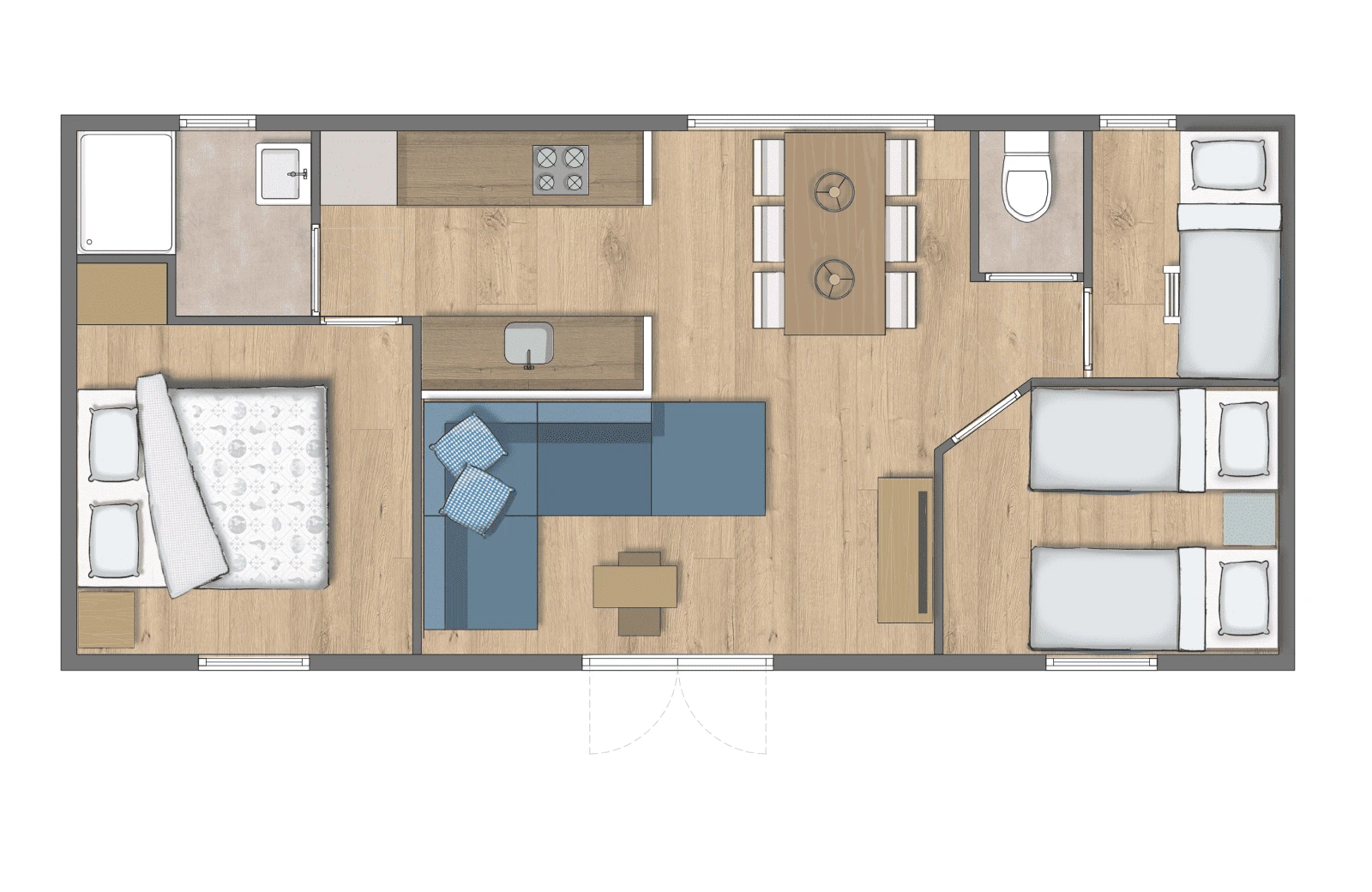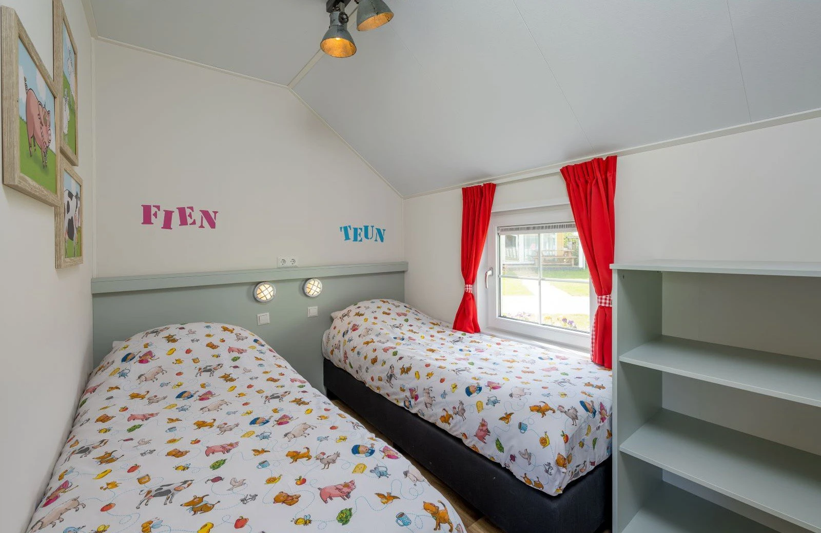 Das Familien Resort Molenwaard verfügt über 30 Fien & Teun Bauernhöfchen, die isch mittem im Park befinden. Die Bauernhöfchen sind tolle Unterkünfte für Familien mit kleinen Kindern und liegen in der Nähe des Streichelzoos, des Open-Air-Theaters und der Spielplätze. Dieser fröhliche, freistehende Bauernhof ist ganz im Zeichen von Fien & Teun gestaltet. Jedes Detail stimmt. So haben Sie das Gefühl, in einem echten Bauernhaus zu übernachten.