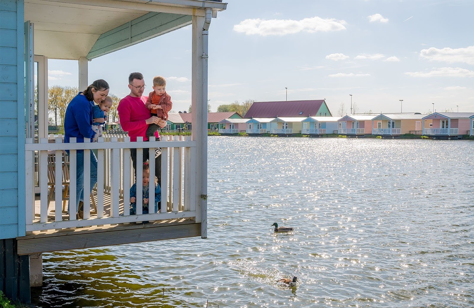 Das Familien Resort Molenwaard verfügt über 20 Kinderdijk Cottages mit Platz für 4 bis 6 Personen, die direkt am Natursee liegen. Die in schönen Blautönen gehaltene Unterkunft steht ganz im Zeichen des Weltkulturerbes Kinderdijk. Selbstverständlich ist jedes Cottage nur wenige Gehminuten von einem Spielplatz entfernt, auf dem sich die jüngsten Gäste austoben können.