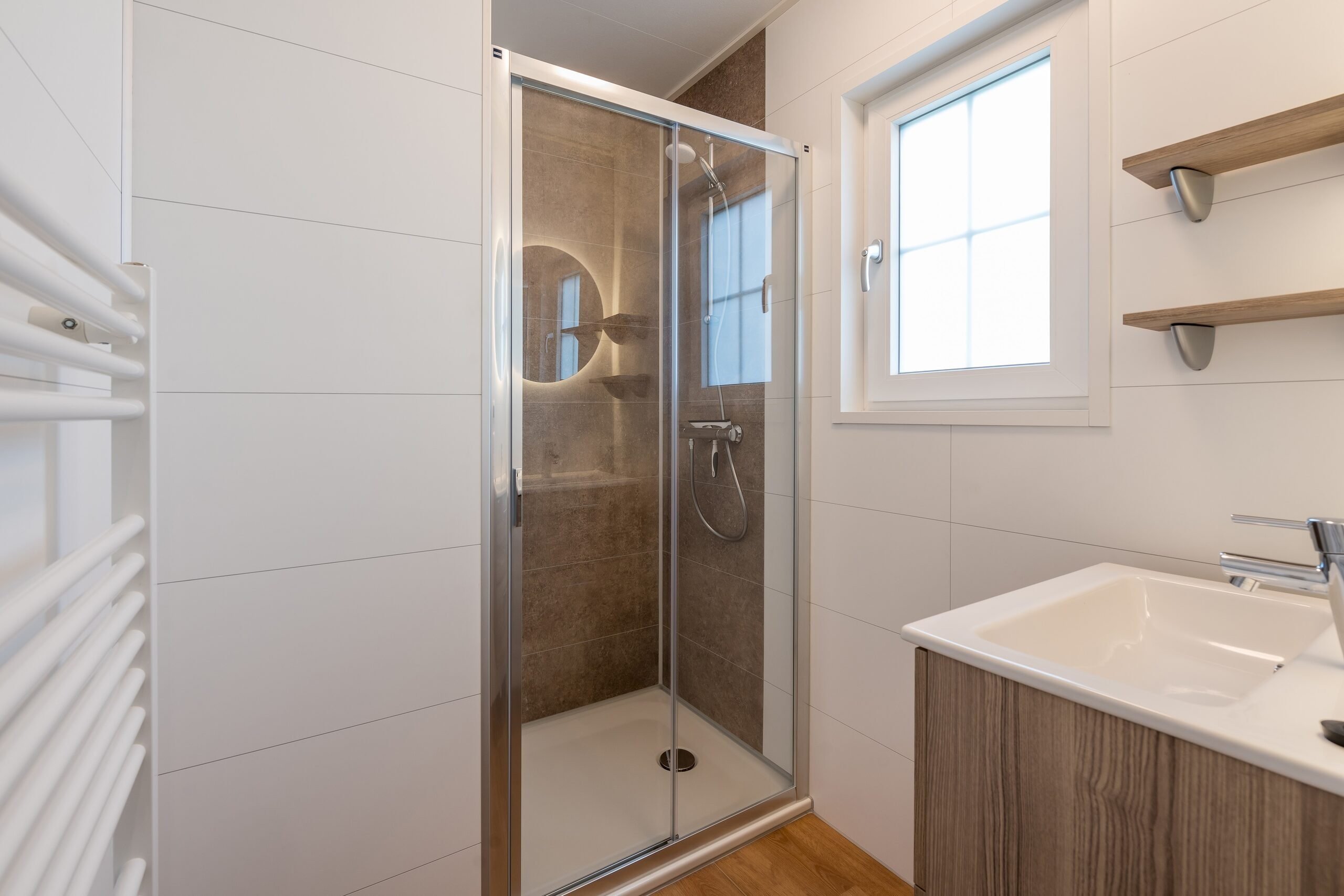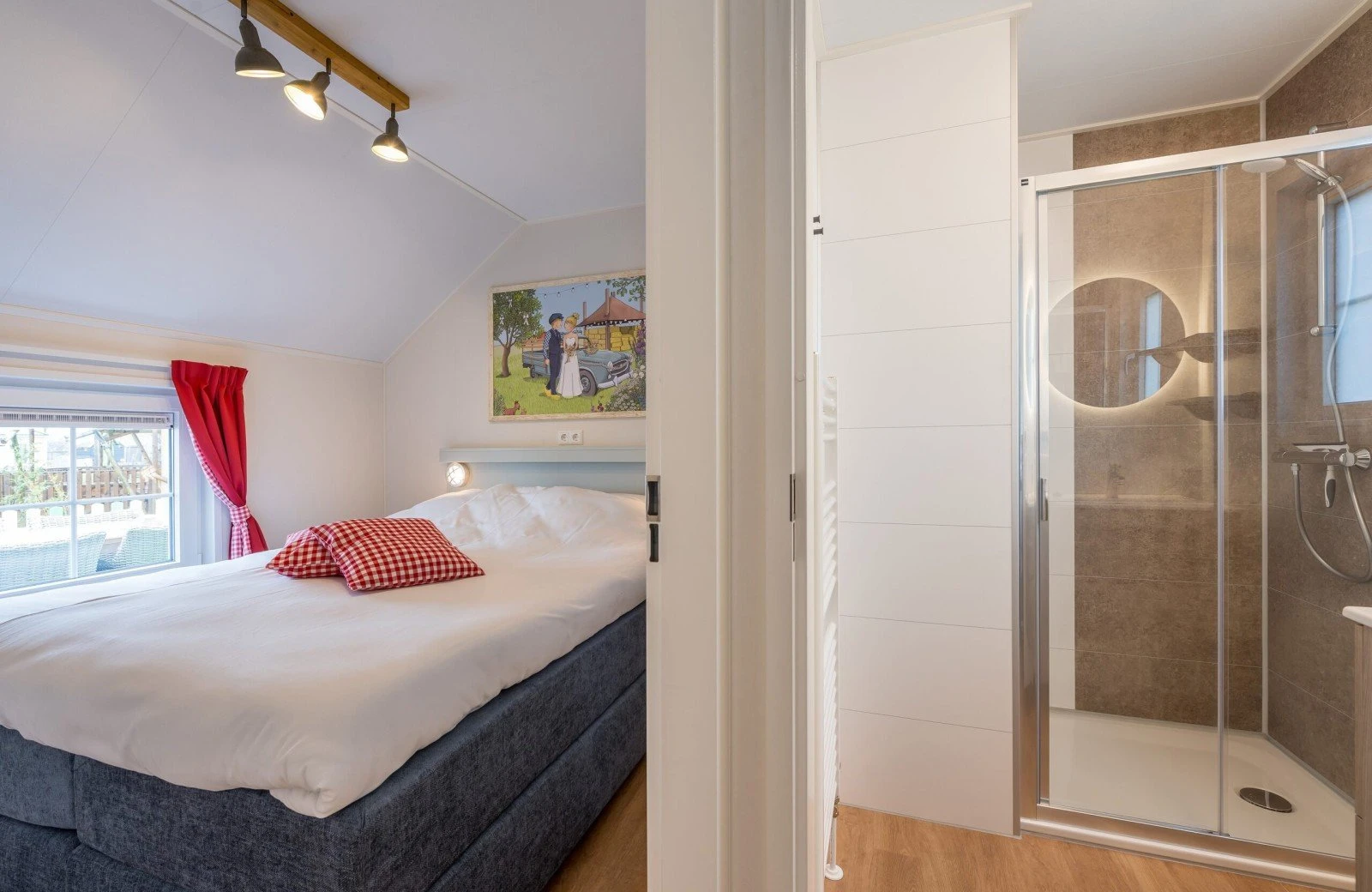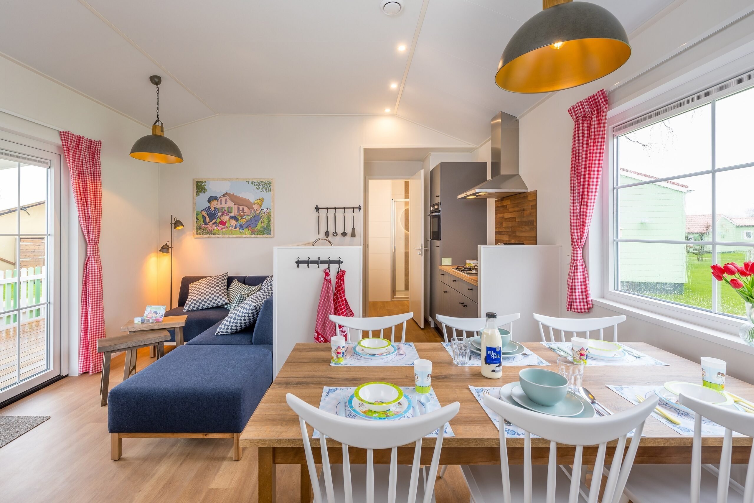 Die frische Polderluft genießen? Dann öffnen Sie die Türen und nehmen Sie draußen auf Ihrer eigenen Terrasse Platz. Die Terrasse ist eingezäunt, so dass die kleinen Bauern sicher spielen können.