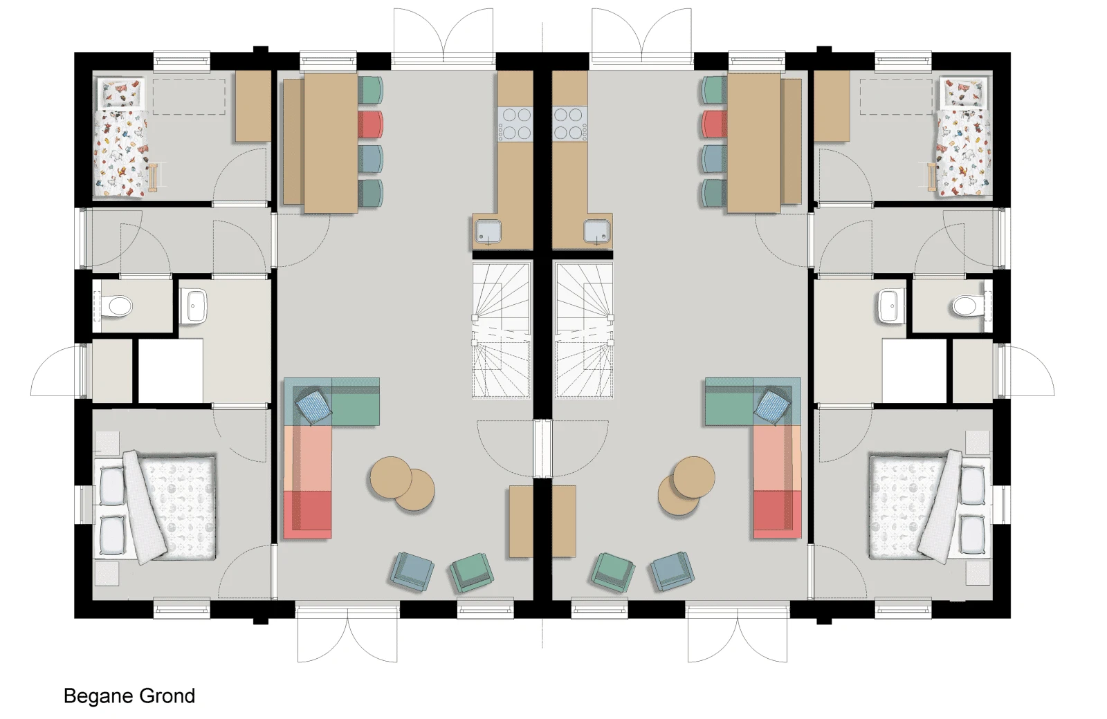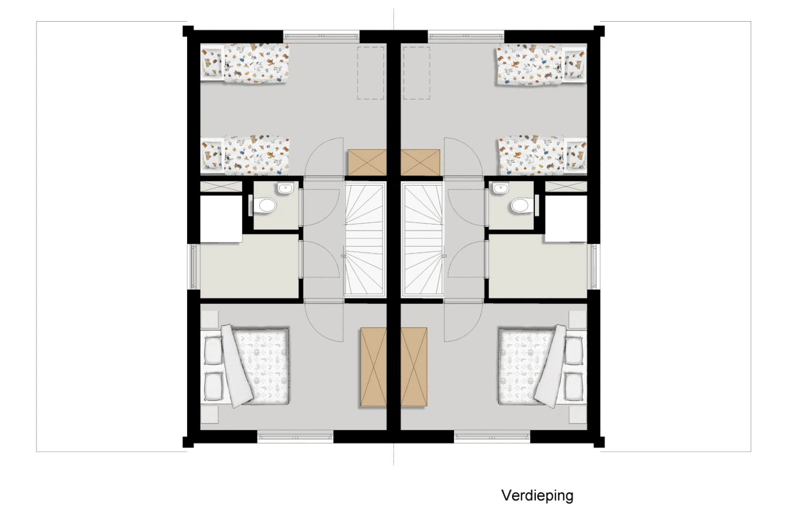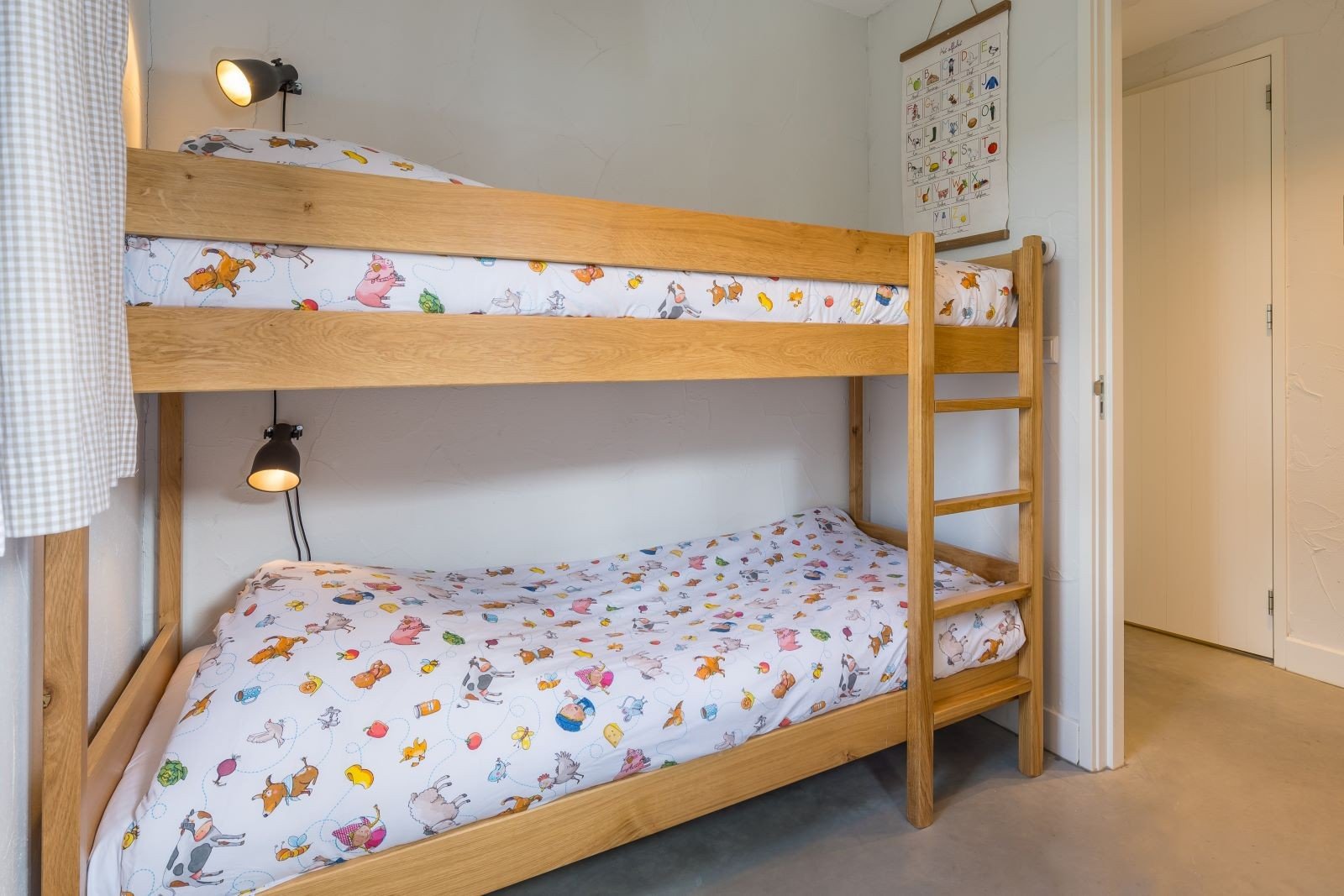 Jede Heuscheuner verfügt über acht geräumige Schlafzimmer. Vier davon befinden sich im Erdgeschoss, zwei mit einem Doppelboxspringbett und zwei mit einem Etagenbett. Im ersten Stock der Hooischuur befinden sich vier weitere Schlafzimmer, zwei mit Doppelboxspringbetten und zwei mit zwei Einzelbetten. Außerdem gibt es im Erdgeschoss und im ersten Stock jedes Hauses ein Badezimmer mit Dusche und eine separate Toilette. Natürlich sind auch die Treppen mit Treppengittern ausgestattet, an die Sicherheit Ihrer Kinder wurde gedacht!