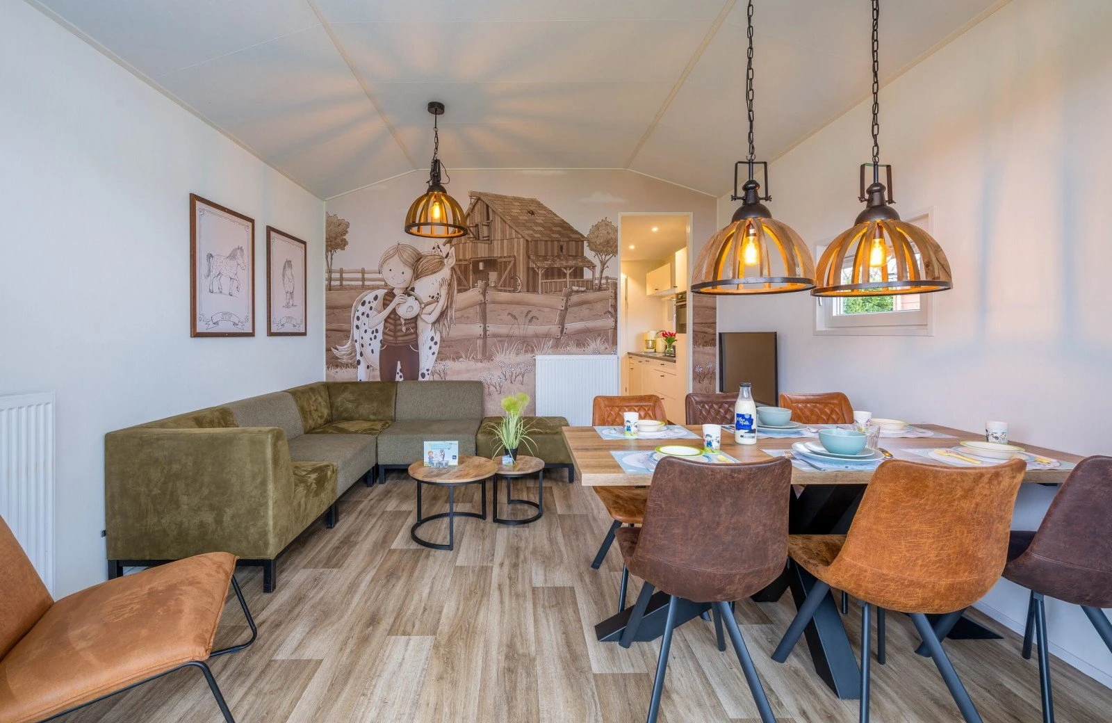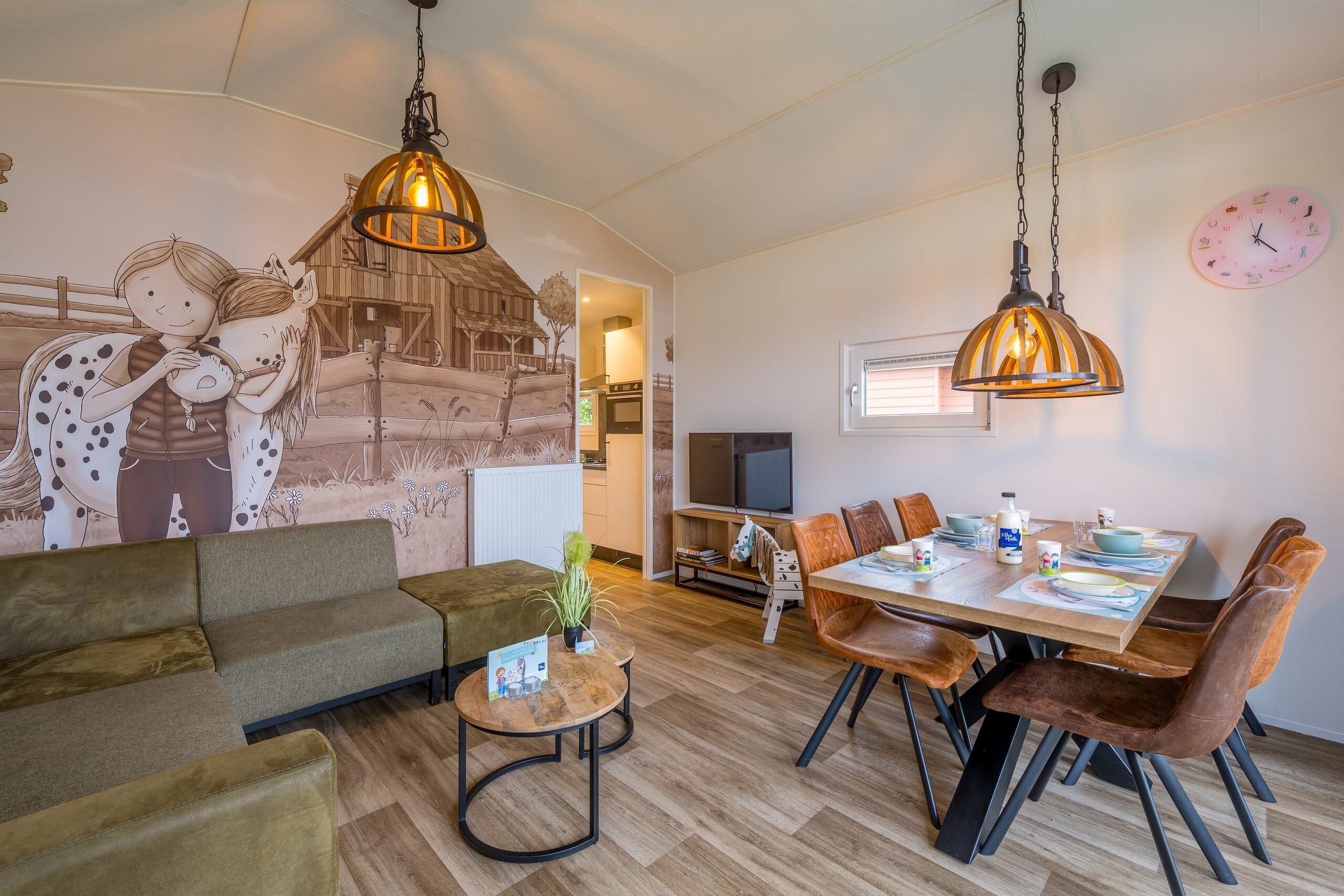 Die freistehenden Stip-das-Pony-Lodges sind ganz im Stil von Stip das Pony gestaltet. Hier erfahren Sie alles über diesen frechen tierischen Freund von Fien und Teun. Die Unterkunft verfügt außerdem über ein gemütliches Wohnzimmer mit Sitz- und Essecke. Die Küche ist mit einem Herd, einer Kaffeemaschine, einem Wasserkocher, einem Kühlschrank, einer Spülmaschine und einem Mikrowellenherd ausgestattet.